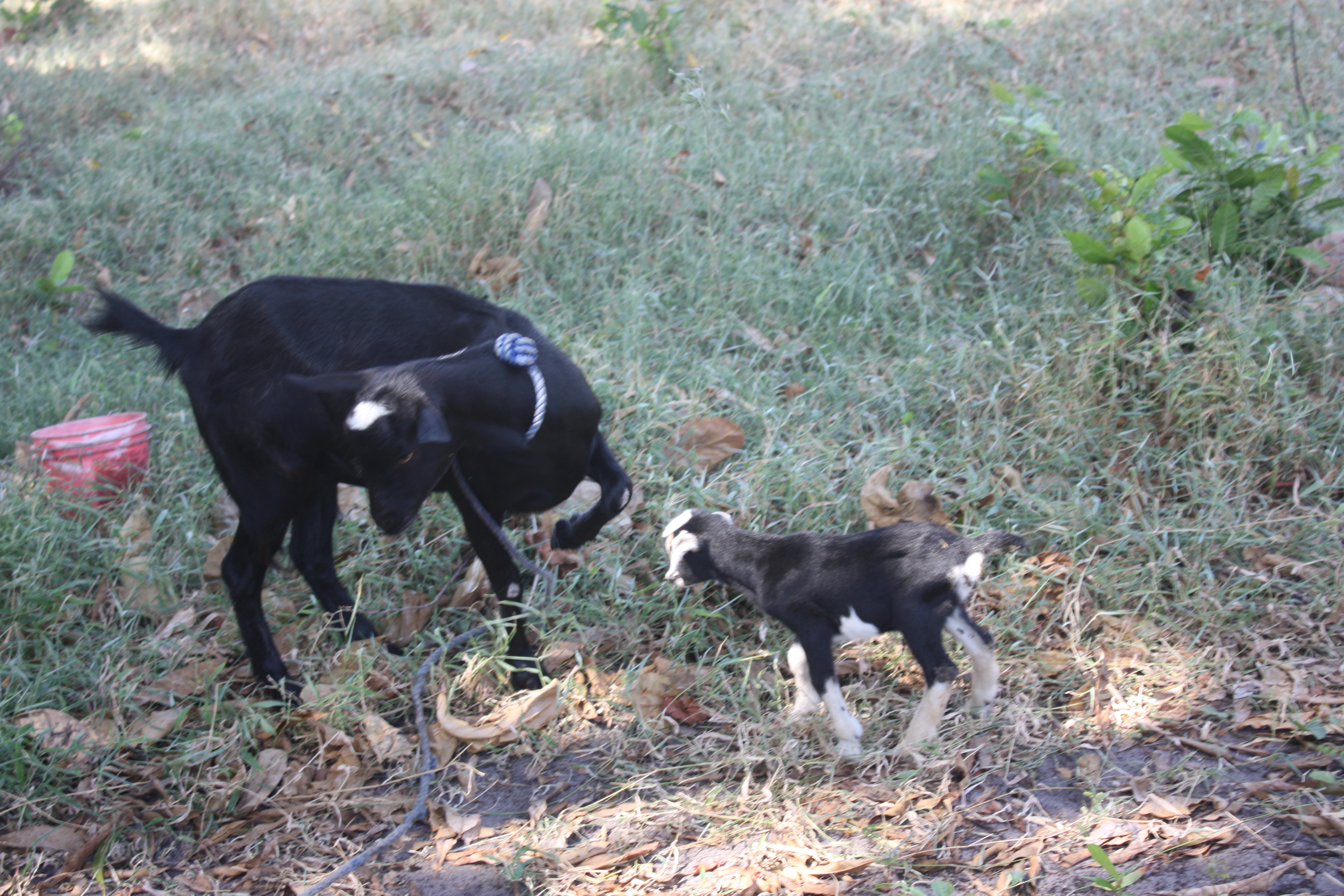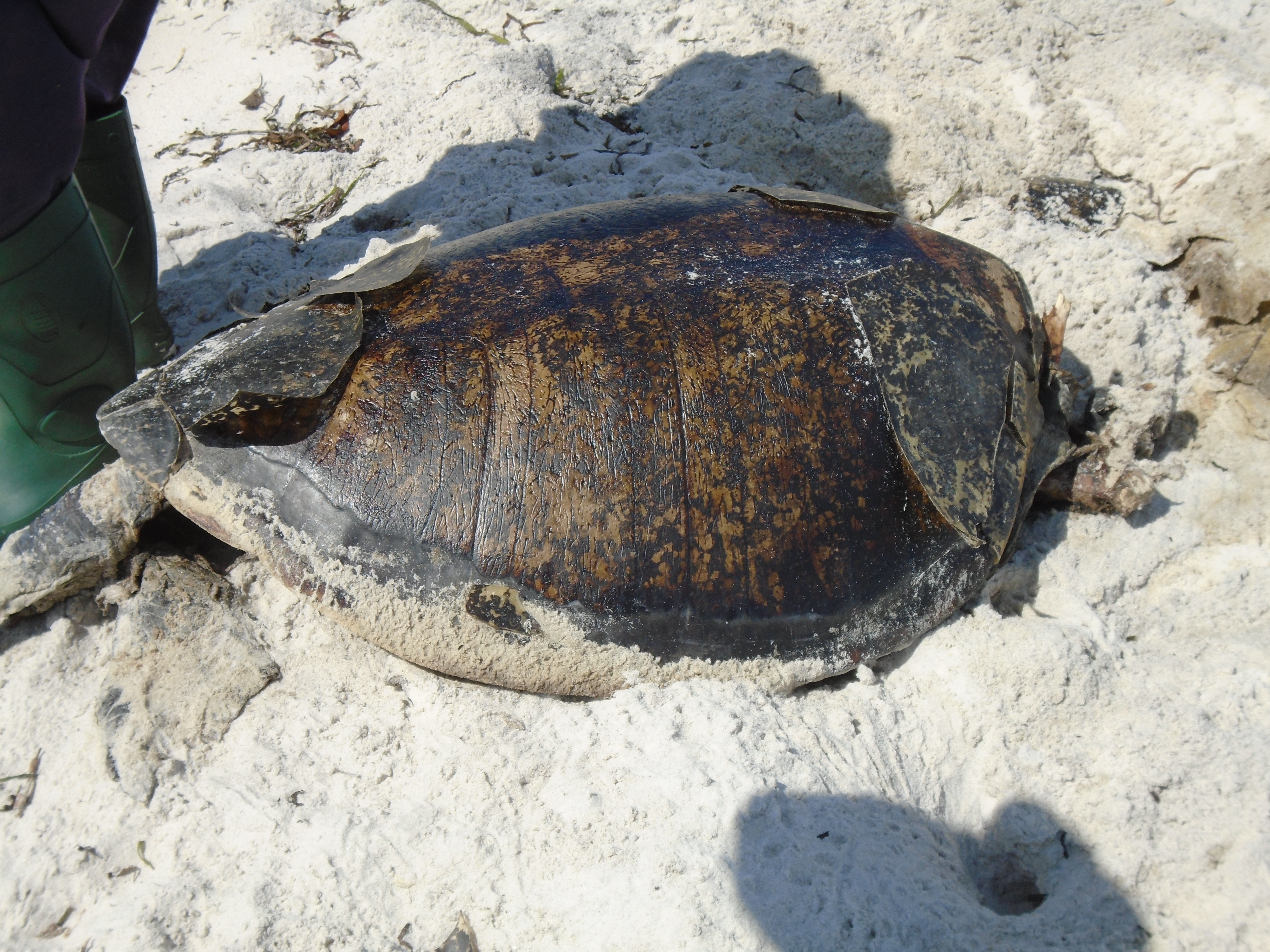 On their trip around our plot they found an egg laying turtle, and a stone on which slaves were tied some 150 years ago.